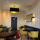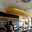 Bei den Malerarbeiten im Innenbereich des CAFE`S wurden Teilflächen mit einer hochwertigen DAMAST-VELOUR-TAPETE tapeziert es wurden Streif und Flowersdesign geklebt. Decken und Wände wurden mit ELF-Innendispersionsfarbe beschichtet. Oberhalb des Verkaufspultes befindet sich ein Dekokipferl und an die Holzwand wurde ein Stuckprofil montiert welches mit Goldeffekt überarbeitet wurde. Der bestehende blaubeschichtete ALU-Wintergarten, wurde mit hochwertiger 2K PU Beschichtung überarbeitet, im Farbton ANTHRAZIT (Dunklgrau).